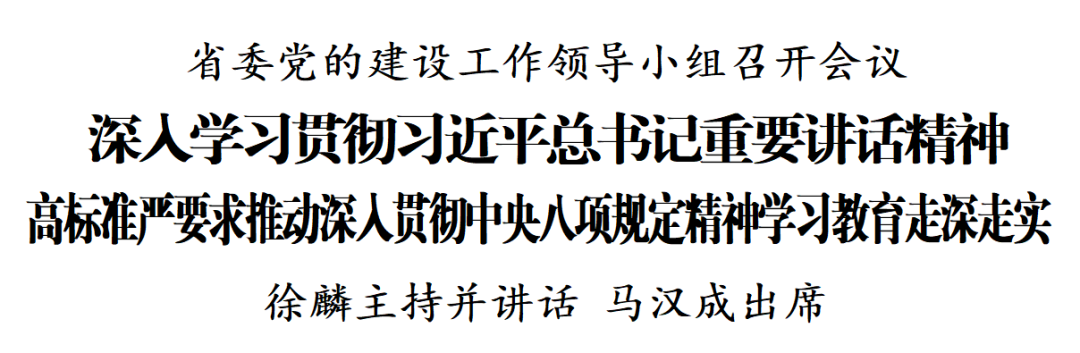 4月13日,省委党的建设工作领导小组召开会议,听取我省深入贯彻中央八项规定精神学习教育进展情况汇报,研究部署下步工作。省委书记、省委党的建设工作领导小组组长徐麟主持会议并讲话,强调要深入学习贯彻习近平总书记在贵州考察时的重要讲话精神,按照党中央部署,高标准严要求推动我省学习教育走深走实。