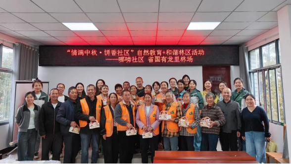 9月25日下午,林场以迎国庆、贺中秋为契机,携手哪嗙社区举办“情满中秋·饼香社区”自然教育+和谐林区共建活动,营造浓厚的节日氛围。社区银龄长者与工作人员共计30余人参加。在工作人员引导下,长者分组制作冰皮月饼,不仅锻炼其动手能力、促进情感交流与融合,还进一步搭建林场与社区的互动平台。