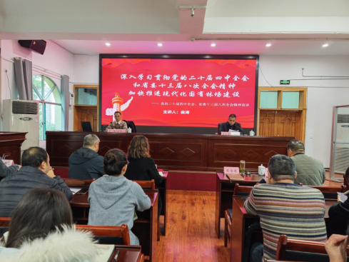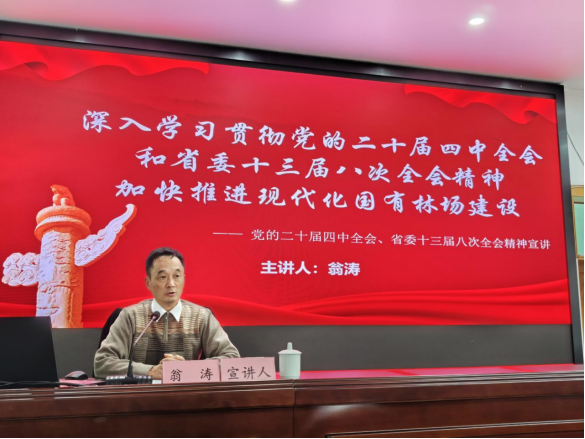 为深入学习宣传贯彻党的二十届四中全会和省委十三届八次全会精神,推动党的创新理论和重大决策部署深入基层、深入人心,12月9日,场党委副书记、场长翁涛在龙架山森林公园开展以“深入学习贯彻党的二十届四中全会和省委十三届八次全会精神 加快推进现代化国有林场建设”为题的宣讲。场党委书记吴安康主持,全场党员、干部80余人参加。