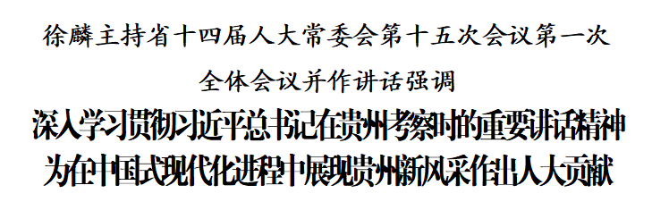 徐麟指出,习近平总书记亲临贵州考察,是全省人民热切期盼的喜事盛事,是贵州发展历程中极具历史性、标志性、里程碑意义的大事要事。总书记在贵州考察时的重要讲话,极具思想引领力、政治动员力、实践穿透力,既是一以贯之的战略指引,也是与时俱进的精准指导,是做好贵州一切工作最权威、最深刻、最有力的科学指导。省人大常委会及全省各级人大组织要自觉把学习宣传贯彻总书记重要讲话精神作为贯穿人大工作的鲜明主线,持续在深学细悟笃行上下功夫,深刻感悟总书记对贵州人民和贵州发展的关怀厚爱,从遵义会议的历史经验和新时代历史巨变中,更加深刻领悟“两个确立”的决定性意义,在衷心拥护“两个确立”、忠诚践行“两个维护”上见思想、见行动、见实效。要深刻领会、对标落实总书记的重要指示要求,聚焦坚定不移走高质量发展之路、着力优化营商环境、推动兴业强县富民一体发展、加强文化建设和文明新风培育、毫不动摇坚持党的领导加强党的建设等重点任务,在高质量立法中展现新担当,在高效能监督中展现新作为,在高水平代表履职中展现新形象,不断丰富和拓展全过程人民民主人大实践,为在中国式现代化进程中展现贵州新风采作出人大贡献。要按照“四个机关”要求强化自身建设,扎实开展深入贯彻中央八项规定精神学习教育,不断提高全省人大工作质量和水平。