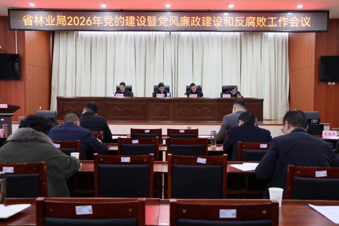 2月3日,省林业局召开2026年党的建设暨党风廉政建设和反腐败工作会。会议传达学习二十届中央纪委五次全会、国务院第四次廉政工作会议、十三届省纪委五次全会精神,回顾总结省林业局2025年度党的建设暨党风廉政建设和反腐败工作,安排部署2026年工作。局党组书记、局长喻兴铸,省纪委省监委派驻省自然资源厅纪检监察组副厅长级专职纪检监察员、副组长韦朝赋出席会议并讲话,局党组成员、副局长刘立一主持会议,局党组成员、副局长宗炜通报有关情况,相关部门作交流发言。