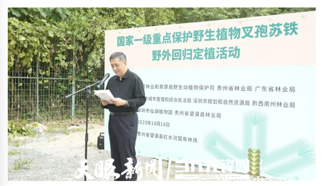 叉孢苏铁是国家Ⅰ级重点保护野生植物,被誉为“植物界的活化石”,仅零星分布于贵州西南部、云南东部和广西西北部的低海拔地区。其野生个体稀少、种群规模有限,是我国特有的珍稀濒危物种。近年来,贵州省高度重视苏铁保护工作,组织实施了苏铁专项调查,基本摸清了全省资源本底。作为叉孢苏铁的主要分布地,黔西南州望谟县林业局积极开展就地与迁地保护,技术人员已掌握叉孢苏铁的采种育苗等人工扩繁技术,成功培育苗木3000余株,为回归活动的顺利实施提供了有力保障。深圳市仙湖植物园自1989年起系统开展苏铁类植物资源收集与繁育工作,2002年经批准,建立了我国首个珍稀濒危植物迁地保护中心——“国家苏铁种质资源保护中心”,经过长期努力,该中心已成功迁地保护国内外苏铁类植物2科10属240余种,保存种类居全国首位。中心持续开展资源调查、系统分类、基因组学等基础研究,积累了丰富的科学数据,为叉孢苏铁保护与回归工作提供了坚实的理论支撑。