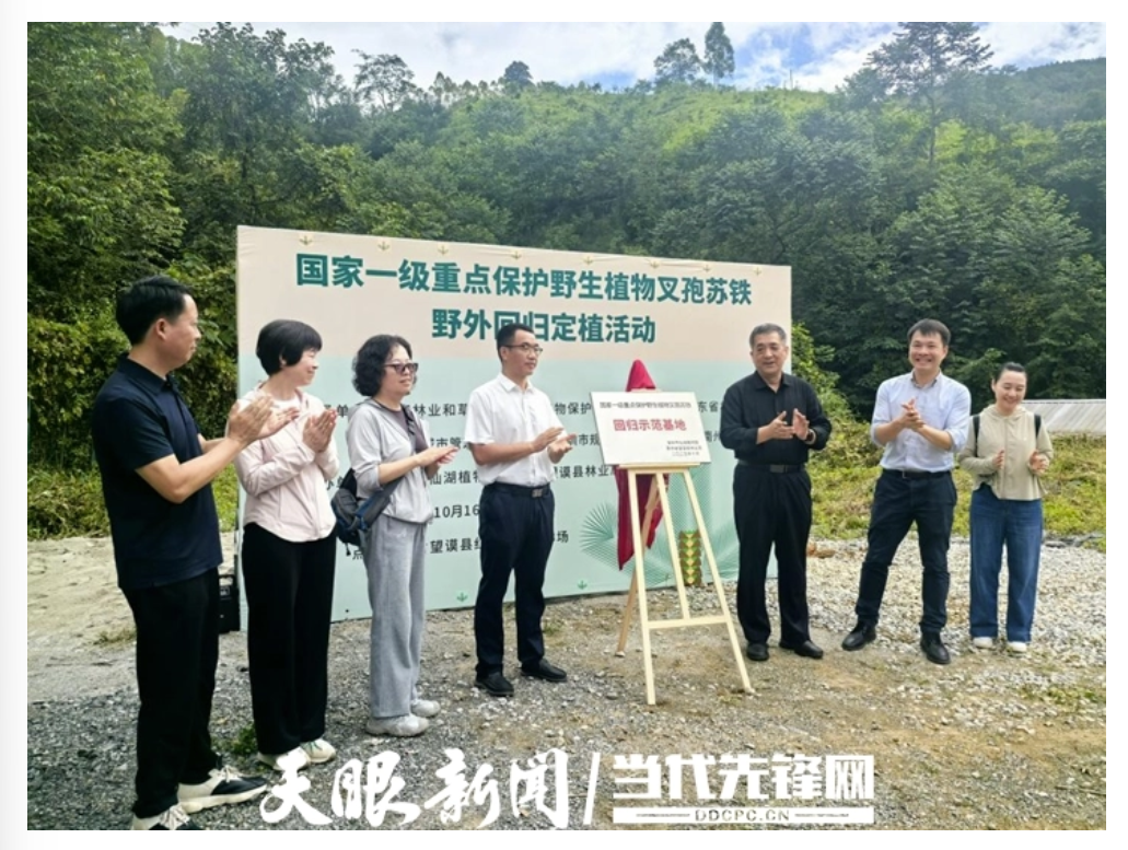 叉孢苏铁回归示范基地揭牌仪式。