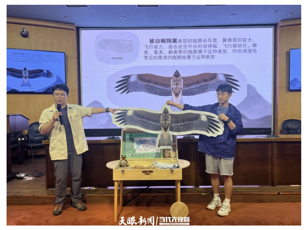 创新宣教模式,公园以全国科普月为契机,联合贵州科技馆推出“萌芽行动”,以“智汇科技·创享未来”为主题,开展“湿地飞羽百宝箱”科普讲座、科技大篷车、AI电子狗互动等系列活动。今年已开展自然教育课程49场,完成重要科普讲解工作22场,受众1600余人。通过沉浸式体验与自然教育课程,激发公众尤其是青少年对湿地保护与科技融合的兴趣,提升全民生态素养,打造科普宣教新标杆。