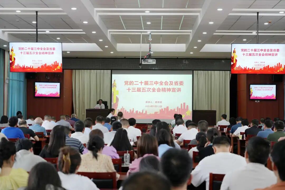 9月12日,省林业局党组书记、局长、机关党委书记胡洪成宣讲党的二十届三中全会和省委十三届五次全会精神。会议由局党组成员、副局长缪杰主持。局机关各处室、省林规院、省林科院、省龙里林场、省扎佐林场、省林发公司党委主要负责人,局大楼在职党员、青年职工共计200余人参加。