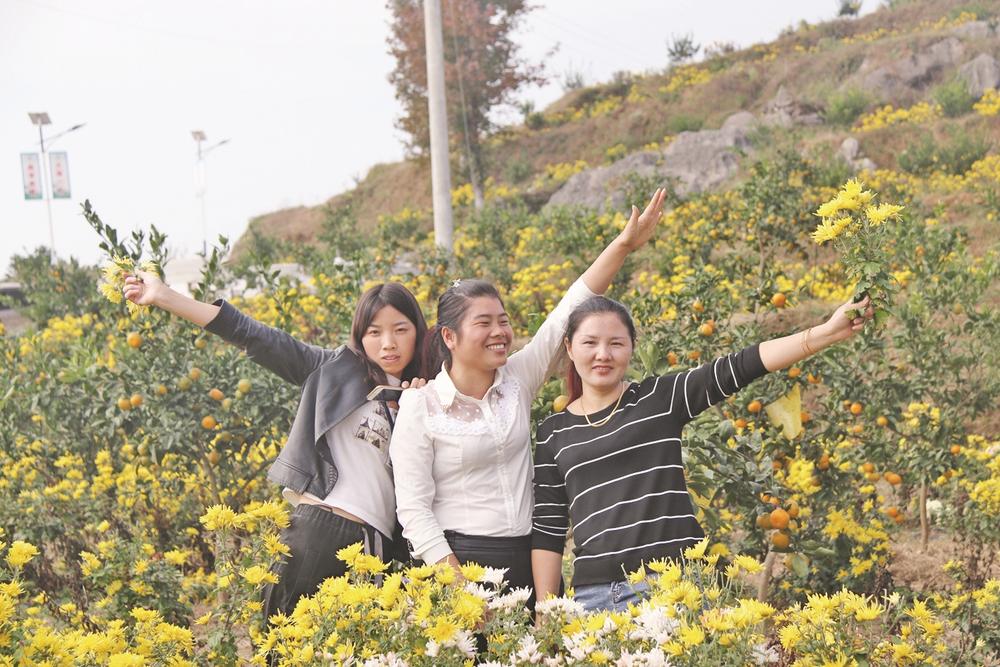 果林下,几点身影穿梭,村民们正在整厢培育菊花苗。欢声笑语划过树梢,归于天际……