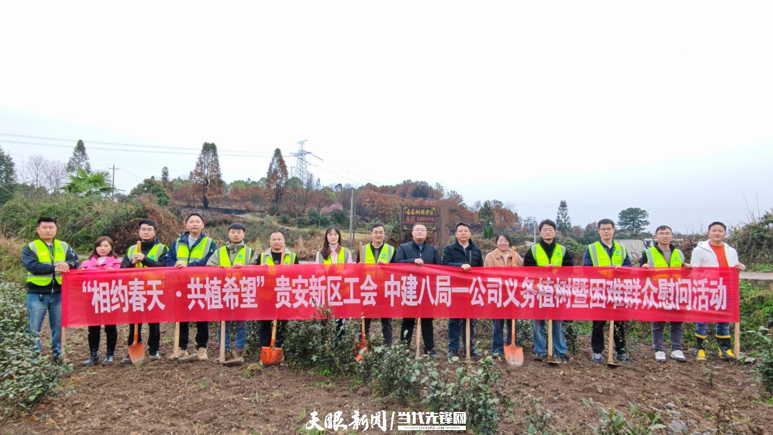 3月19日,贵安新区工会组织中建八局第一建设有限公司与贵安新区党武街道掌克村联合开展一场“相约春天·共植希望”义务植树暨困难群众慰问活动。