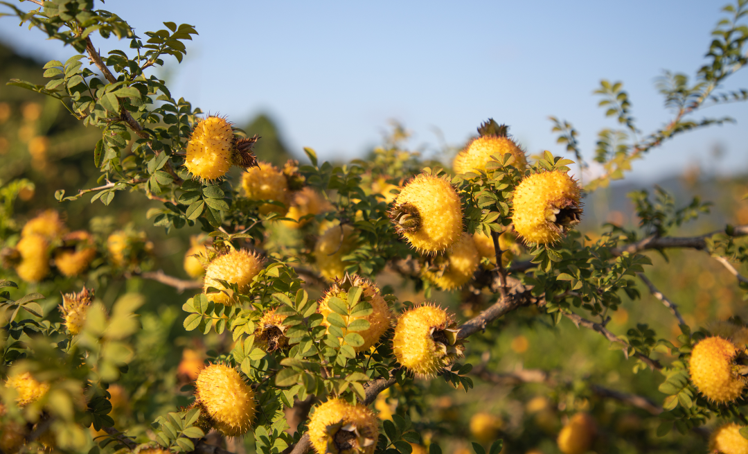 放眼整个黔南,61万亩刺梨花红遍了山头,待到金秋将结成10万余吨鲜果。这些鲜果将进入龙里冠山、贵定沿山两个刺梨加工集聚发展园区的21家刺梨加工企业,变成美味的果脯、果冻、饮料、红酒、刺梨茶,以及面膜、洗发乳等40余种刺梨产品,创造综合产值38亿元。
