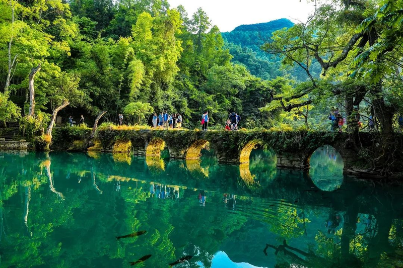 荔波小七孔风景区,同样是贵州知名的“天然氧吧”,其负氧离子含量高达每立方厘米18万个,森林覆盖率超过92%。这里的喀斯特地貌与其他地方的完全不同,山势温和,绿意盎然,仿佛一块巨大的绿毯铺满山间。