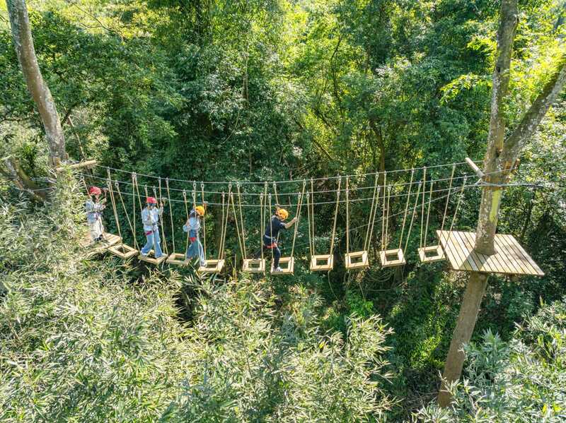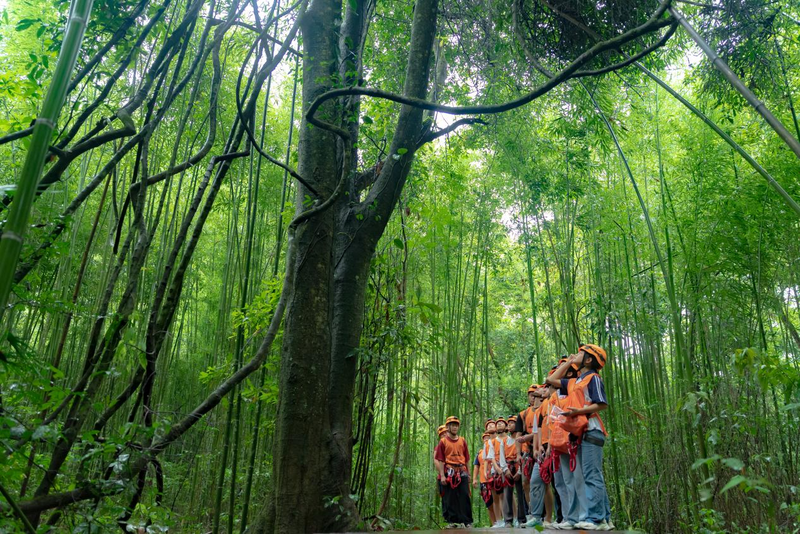 飞拉达、攀树运动、飘摇浮岛、飞越竹海……难度各异的线路穿梭于古树群间,不仅可供散客体验,也能为中小学生提供自然地质科普教育、生态科普教育、户外轻探险三大课程体系的研学活动。“我们致力将世遗探险部落打造成贵州省内乃至全国少有的户外轻探险最大集聚群。”周燕堤说。