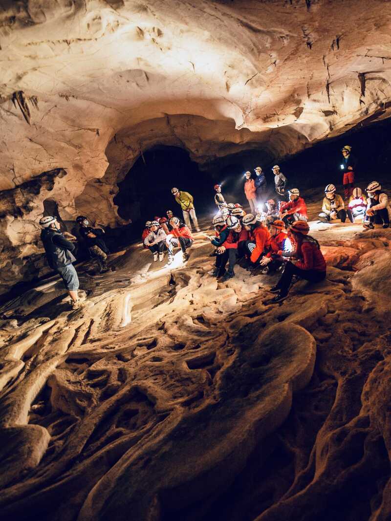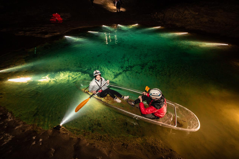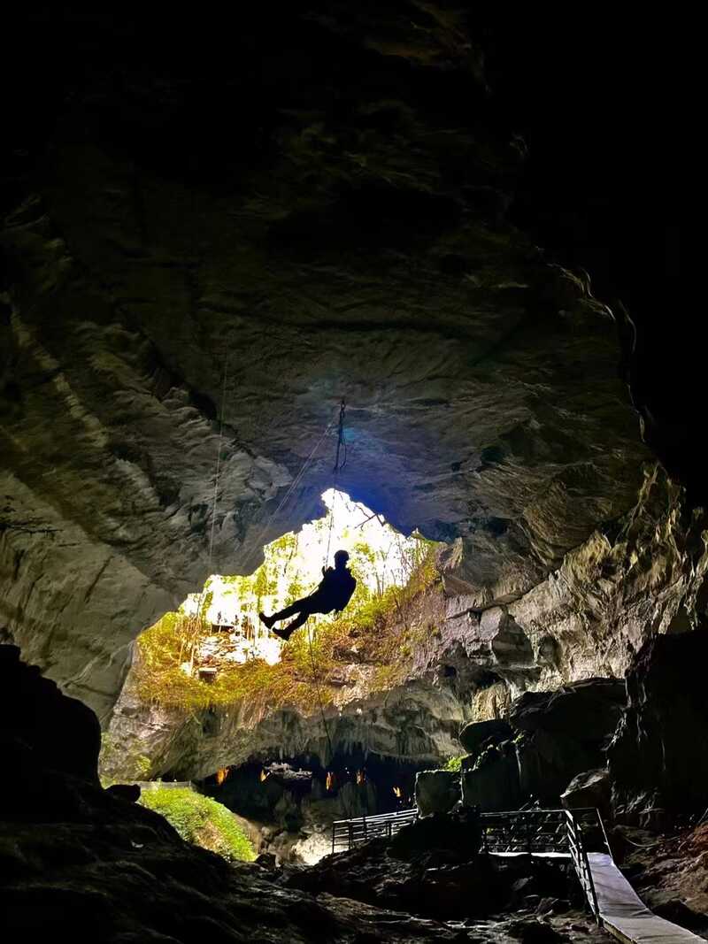今年最受欢迎的地心探险项目,分为大小两条环线:大环线全程约5小时,包含溜索进洞、洞道穿越、高空原木桥、斜坡爬绳、地心下午茶、暗河玻璃船、独木舟、洞穴晚宴等十余个环节;小环线需3小时,体验同样惊险丰富。