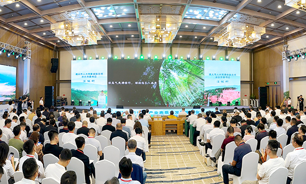 遵义市人大常委会副主任、赤水市委书记汪能科在致辞中向出席本次会议的各级领导、各位来宾表示最诚挚的欢迎,向长期以来关心支持赤水发展的社会各界朋友表示最衷心的感谢。他说,竹都赤水是一片被时光和自然偏爱的土地,132.8万亩茫茫竹海,见证了这座城市与竹共生的故事。当前,赤水正抢抓“以竹代塑”风口,全力打造“以竹代塑”集聚区,建成国家赤水竹产业示范园区,招引培育200余家竹企,构建竹浆模塑、竹建材、竹日用品等4大类、100余种产品的产业体系,在全省率先与宁德时代(贵州)新能源以及比亚迪弗迪电池公司签署战略合作协议,与贵州大学合作共建竹质生物质高效利用技术创新中心,不断提升竹产业的含绿量、含新量、含金量,奋力建设新时代“中国竹都”。