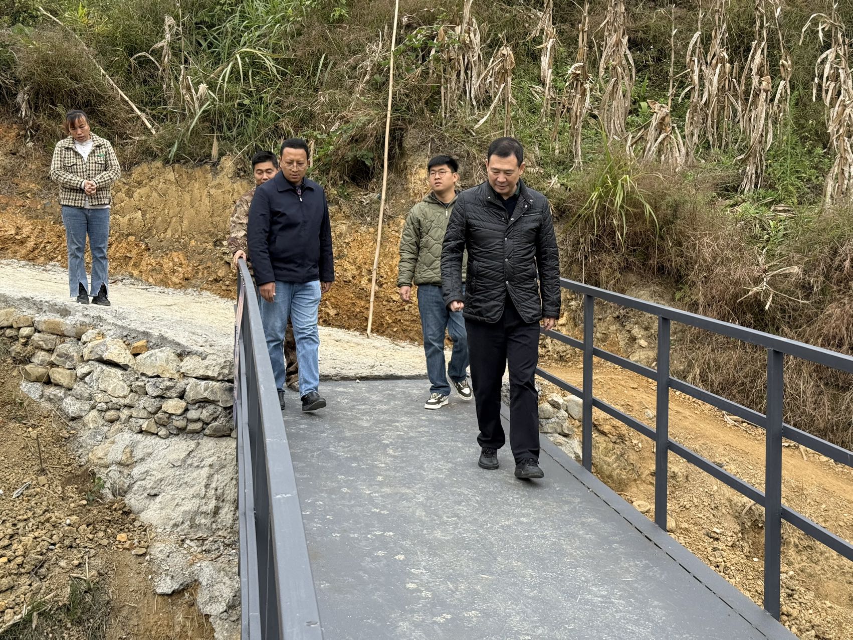 在秧坝镇昂涛村和宜哨村,刘立一实地察看省林业局出资帮扶的2座桥梁维修情况和2座“民生桥”新建情况,询问桥梁设计施工标准和投用受益范围,强调一定要严把质量安全关,协调专业部门搞好安全技术检测,公布桥梁通行限载等事项,解决群众过河难题,切实把好事办好,筑牢乡村振兴基础设施保障。