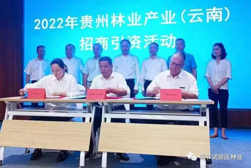 贵州省林业局产业处处长胡志伟主持会议,云南省林业和草原局总经济师钱崇峻、贵州省投促局二级巡视员韩友芳出席并见证签约,市林业局党组成员、副局长(主持工作)糜小林、织金县政府副县长陈昌海、县林业相关部门负责人、斗南集团等5家企业参加会议。