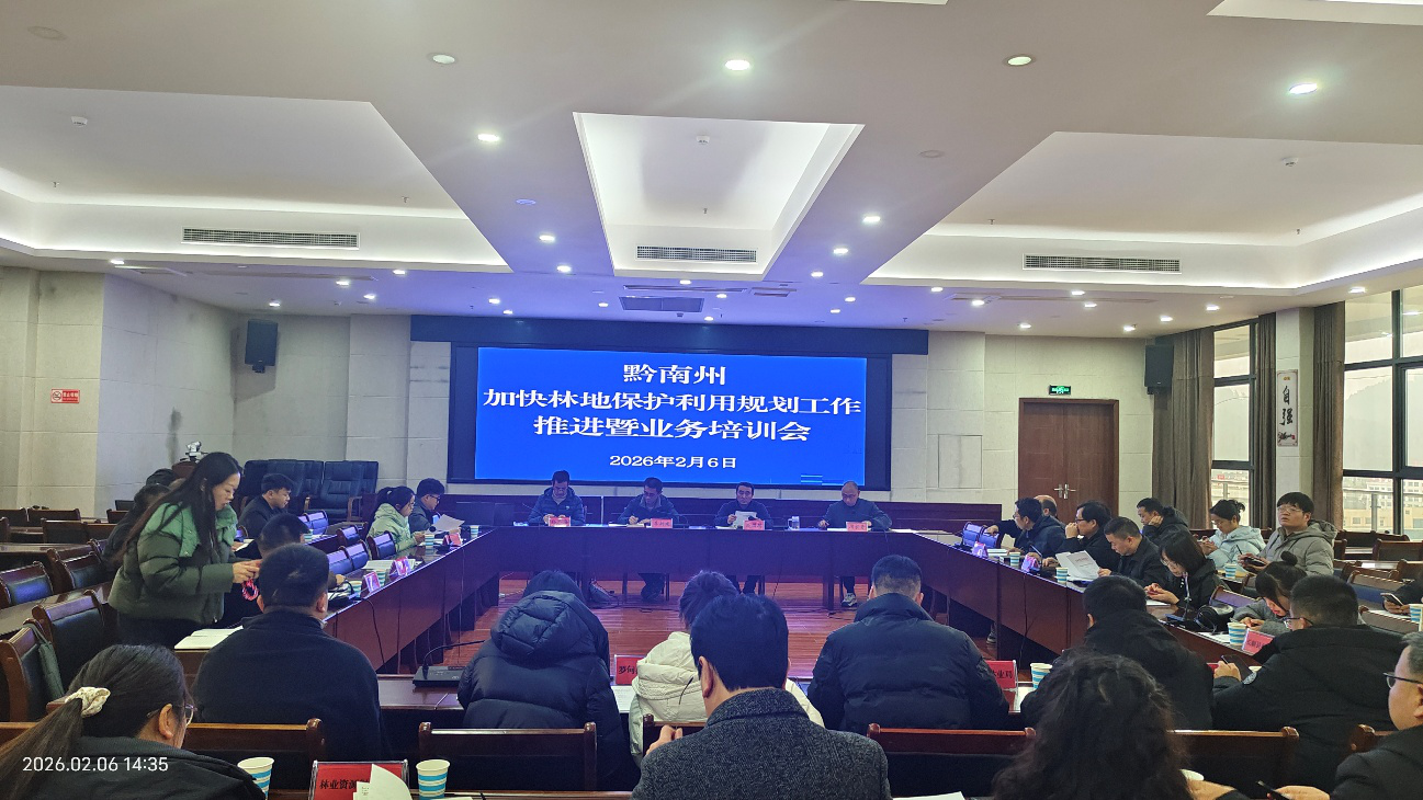 2026年2月6日,黔南州林业局在都匀市组织召开林地保护利用规划工作推进暨业务培训会。会议特别邀请国家林草局中南调查规划院专家团队现场授课、精准答疑,为全州林地保护利用规划编制工作提供专业技术支撑。局党组成员、副局长欧国腾在会上提要求并安排工作,局资源保护科、资源保护中心、世遗办、资源调查监测中心相关负责同志,以及各县(市)林保规划工作负责人、技术骨干参会。