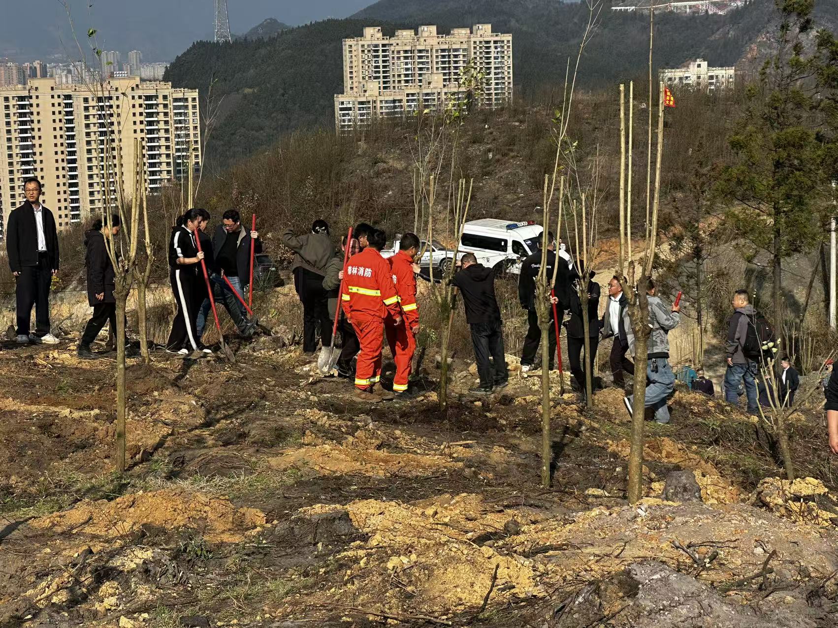 2月28日,六盘水市2026年义务植树活动在全市各地同步开展,活动主题为“厚植生态根基 巩固发展优势”。市委、市人大、市政府、市政协及各市直机关领导,前往钟山区红岩街道垭口社区市级义务植树点,与干部群众共同参与植树,以实际行动为凉都增绿添彩。植树现场,大家三五成组,严格按照“三埋、两踩、一提苗”技术要领,挥锹铲土、扶苗填坑、提水浇灌,一派热火朝天的劳动景象。连续多年持续开展,义务植树活动彰显了省、市推进生态文明建设的坚定决心,久久为功、持续发力,让其成为推进国土绿化、厚植生态优势的重要品牌。
