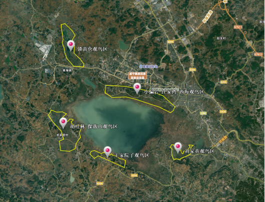 此次竞赛赛制是团队赛,在46个小时内完成比赛,竞赛推荐5 个观鸟区供参赛队伍自行选择。具体为:锁黄仓公园观鸟区、胡叶林—倮落山观鸟区、王家院子观鸟区、刘家巷观鸟区、小偏岩—江家湾—西海观鸟区。