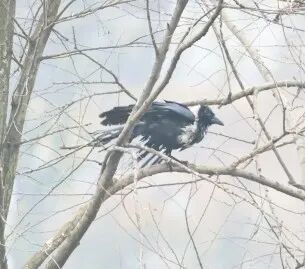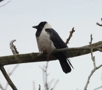 三种鸦科鸟类也在岸边忙碌地寻找食物或时而飞到高处警戒四周环境。