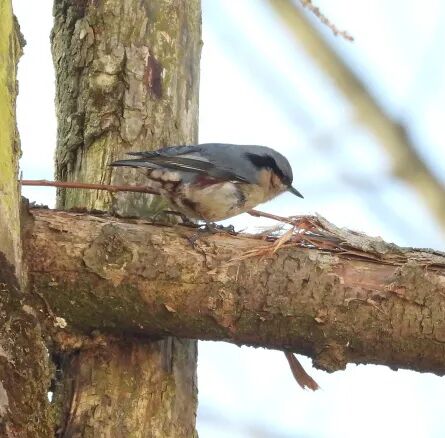 五个观鸟区均看完后,我们小队经过讨论,最后一致决定到薛家海子附近去补充一些其他区域的鸟种,该区域主要以居民区-林岛-耕地生境为主,我们在这里惊喜地加新了个人鸟种记录-黑眉长尾山雀、还看到了三道眉草鹀、黑头金翅。还拍到了珀氏长吻松鼠吃饱后,在柿子树侧枝眺望远方、似在思考松鼠生命的意义。